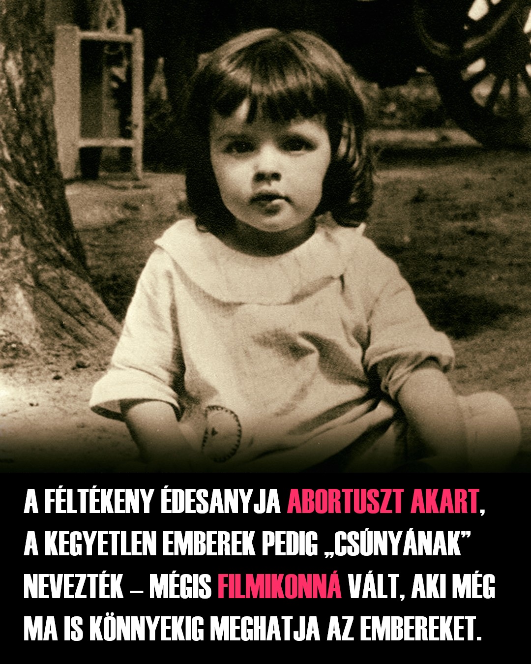 Káoszban nőtt fel, gyerekkorát állandó bizonytalanság, nyomás és olyan figyelem kísérte, amit egy gyereknek soha nem lenne szabad megtapasztalnia. Mégis, az egyik legnagyobb hollywoodi sztárrá vált. A kislányt már egészen korán a reflektorfénybe lökték, miközben irányították, bírálták, túlterhelték, és gyógyszerekkel tartották talpon. A csillogó jelmezek és meseszerepek mögött egy kimerült, bizonytalan gyerek állt, akit egy olyan rendszer használt ki, amelyet sokkal jobban érdekelt a pénz, mint a gyerekek védelme.