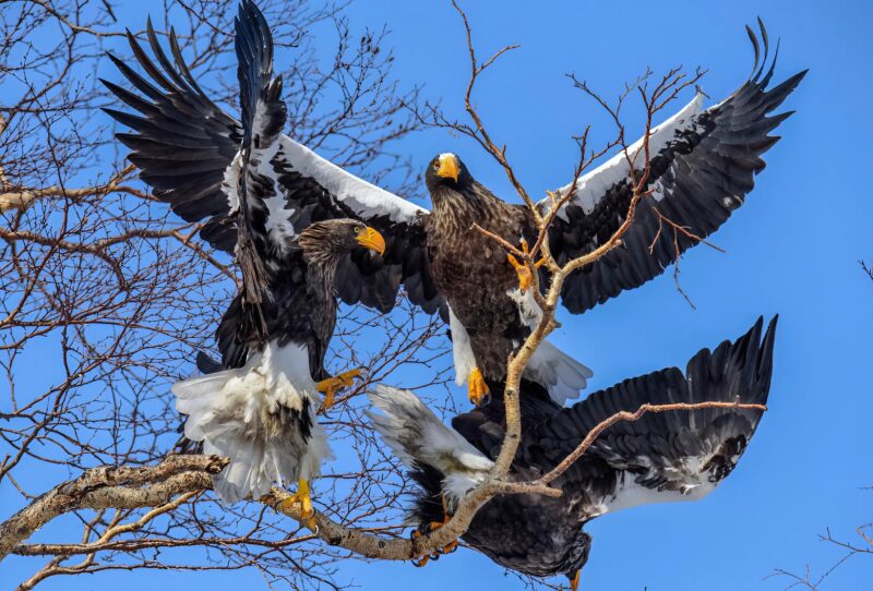 Senki sem mozdult. Még a gyerekek is, akik a szüleik mellett álltak, némán, mozdulatlanul figyeltek. A sasok nyugodtan ültek a köveken, széttárták szárnyaikat, mintha mindegyik a saját helyét foglalta volna el.