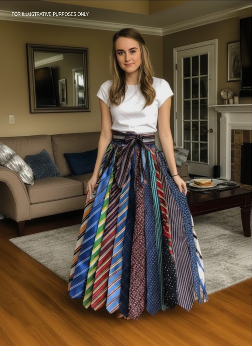 Megtanultam varrni. Videókat néztem hajnalig, gyakoroltam régi anyagdarabokon, aztán lassan összevarrtam a nyakkendőket egy hosszú, lágy esésű szoknyává.