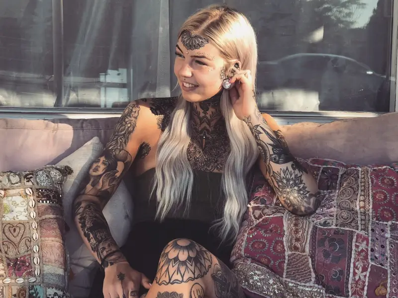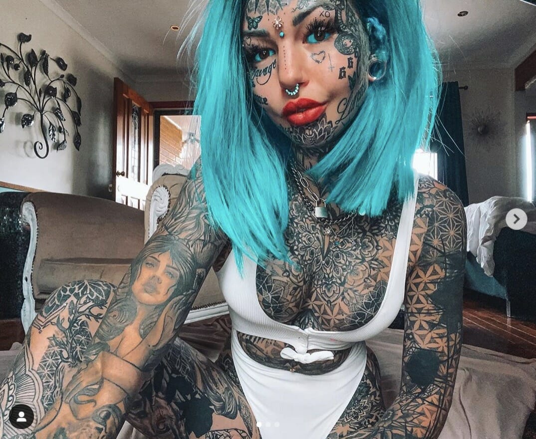 Ez a 24 éves ausztrál lány azt tűzte ki célul, hogy 25 éves kora előtt az egész testét tetoválásokkal borítja be. És most egy lépéssel közelebb került a céljához – ugyanis tintával borította be a kebleit is – számol be a Daily Star.