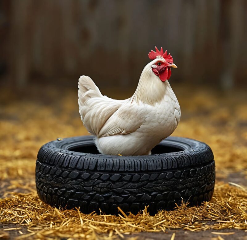 Használj régi autógumikat tyúkpihenő készítésére. Vágd félbe a gumit, és rögzítsd a tyúkház falához. Olcsó és kényelmes megoldás.