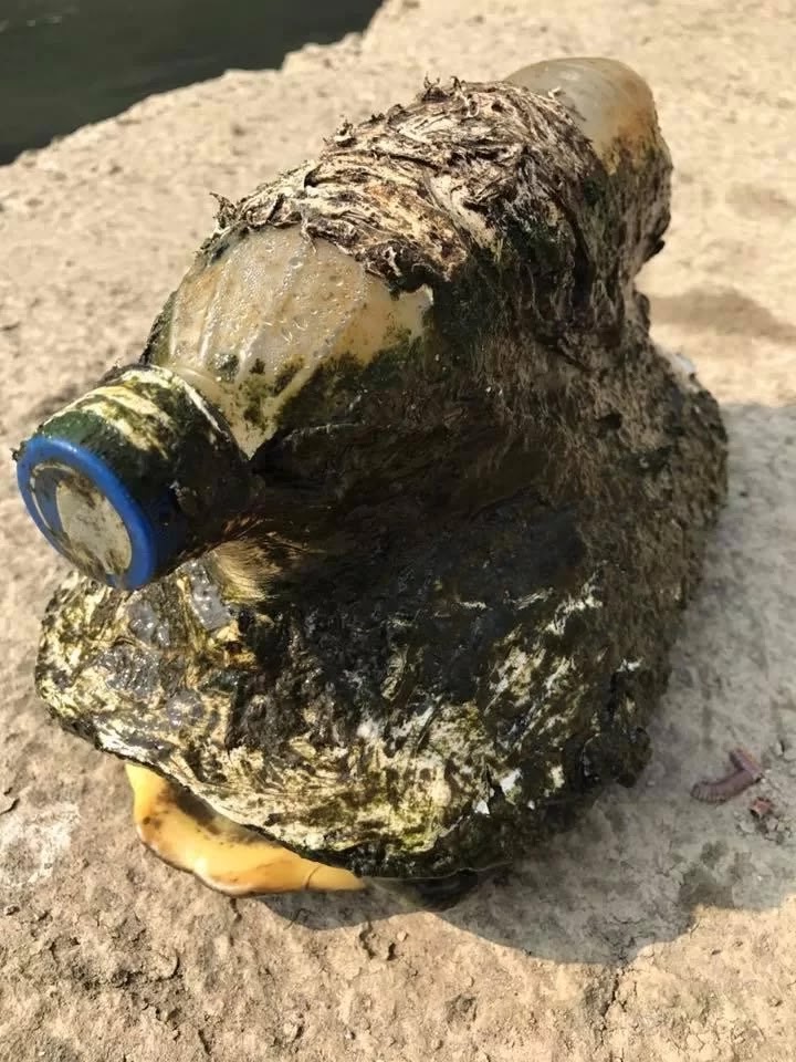 A gonoszságnak nincsenek határai, szilikonnal erősítették a palackot a teknős páncéljára, így nem tudott az állat lemerülni a víz alá. Kénytelen volt a víz felszínén úszni, és így sokkal kevesebb táplálékhoz tudott hozzájutni. Már jó ideje ebben az állapotban lehetett a szerencsétlen jószág, mivel sűrű moha borította a palackot és a teknőst is.