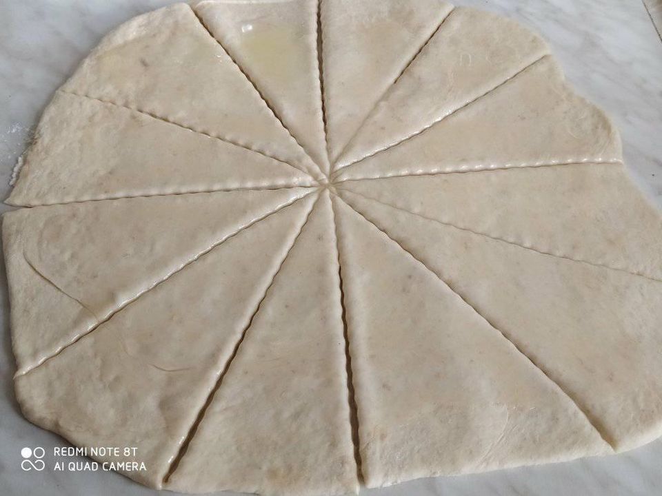 A lisztet a sót össze keverjük. A tejet meglangyosítjuk pici cukorral ha ez megtörtént akkor belemorzsoljuk az élesztőt ha felfutott akkor hozzáadjuk a liszthez s végül hozzáöntjük az 1 dl olajat. Összegyúrjuk a tésztát, ha elválik az edény falától akkor kész pici lisztet szórunk rá a tetejére s félreteszük 30 percre kelni. Ha ez megtörtént akkor lisztezett felületen kör alakúra kinyújtjuk, megkenjük vékonyan vagy olvasztott zsírral vagy olvasztott margarinnal. Cikkekre felvágjuk (12 db) és kintről befelé feltekerjük őket kifli formájúra. Tojással lekenjük a tetejét, megszórjuk a tetejét ki mivel szeretné vagy akarja, sajt szezámmag, só, köménymag, lenmag. 180 fokos sütőben aranybarnára sütjük ez kb 20-25 perc.